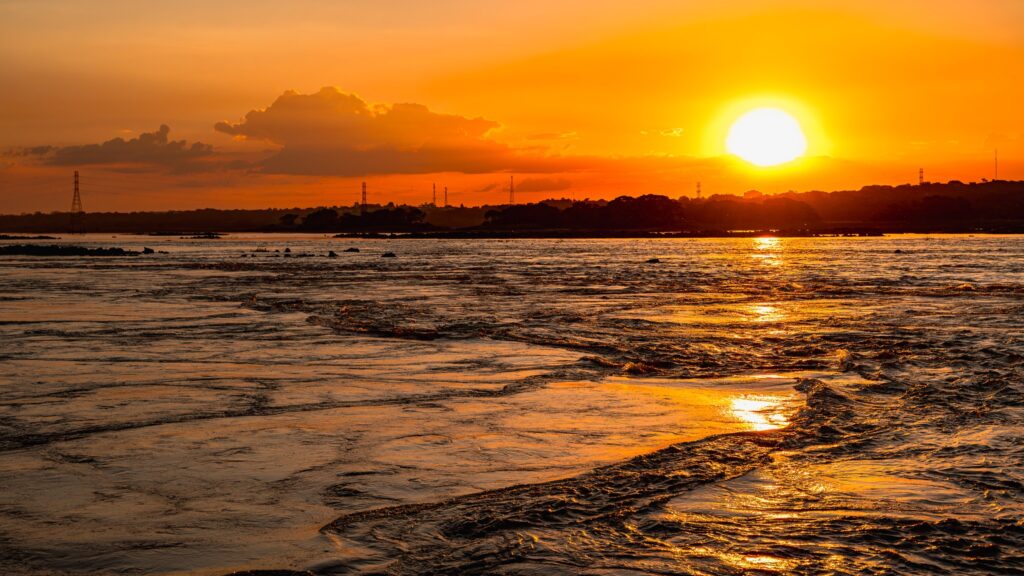 A beleza que sempre caracterizou o encontro entre rio e horizonte alcança, neste período, uma dimensão ainda mais impactante. O cenário impressiona pela grandiosidade e pela sensação de reencontro com a história. Sob a luz do entardecer, as pedras expostas e as corredeiras compõem uma moldura natural de rara intensidade estética, sem contar o som das águas.