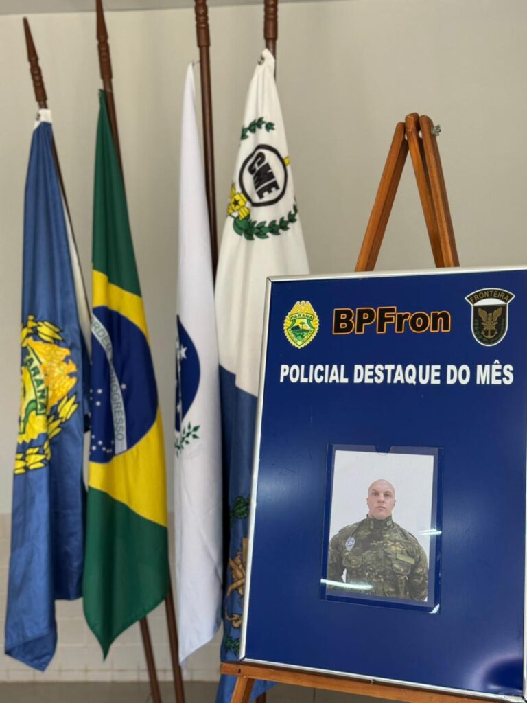 Nesta quinta-feira (26/02), a Polícia Militar do Paraná, por meio do Batalhão de Polícia de Fronteira (BPFRON), realizou a solenidade do Policial Destaque do mês de janeiro, no auditório da 2ª Companhia do BPFRON, na cidade de Guaíra.