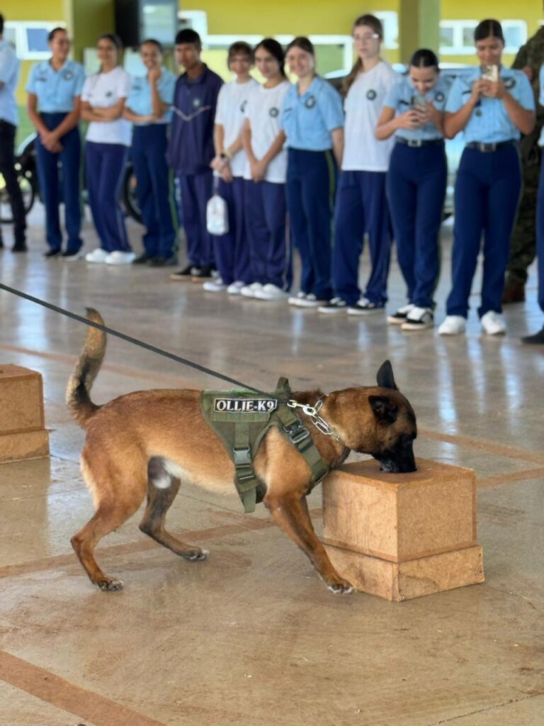 Além da solenidade, os alunos do Colégio Cívico-Militar puderam conhecer um pouco mais dos trabalhos realizados pelo Pelotão de Operações com Cães, assistindo à demonstração com o semovente Ollie na busca por entorpecentes, conduzida pelos policiais do Canil. Também foi realizada uma exposição de equipamentos, armas e demais materiais utilizados pelo Pelotão C.O.B.R.A durante o desenvolvimento das atividades operacionais. Ao final, os estudantes visitaram as demais instalações da Companhia, fortalecendo o vínculo entre a instituição e a sociedade.