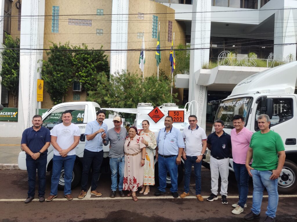 Na tarde desta sexta-feira, 9 de janeiro, o Município de Guaíra realizou o ato oficial de entrega de três novos veículos que passam a integrar a frota da Secretaria Municipal de Agropecuária, Infraestrutura e Meio Ambiente. A solenidade ocorreu em frente ao Paço Municipal e reuniu autoridades, vereadores, servidores públicos e moradores.