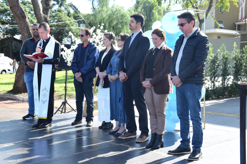 O momento solene ainda contou com a benção e saudação do padre Jauri, da Paróquia Nossa Senhora dos Navegantes, e com o descerramento da placa inaugural e o desenlace da fita, seguidos da tradicional foto oficial com os representantes da frente de honra.