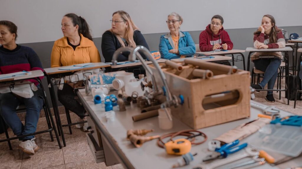 O Município de Guaíra, por meio da Secretaria de Desenvolvimento Econômico e Emprego (SEDE), promoveu mais uma importante ação voltada à capacitação profissional e à valorização da sustentabilidade. Em parceria com a Escola Técnica Profissionalizante e a SANEPAR, foram realizados, nos dias 4 e 5 de julho, dois cursos técnicos com foco em saneamento básico: o Curso de Pequenos Reparos Hidráulicos para Mulheres e o Curso de Encanadores. Ao todo, 27 alunos participaram das formações, que aliaram qualificação prática, conscientização ambiental e fortalecimento da infraestrutura urbana.Os cursos foram estruturados para oferecer conhecimento técnico atualizado sobre normas e procedimentos relacionados às ligações de esgoto e reparos hidráulicos, proporcionando aos participantes habilidades essenciais para uma atuação segura e eficiente. A proposta vai além da formação profissional, ao incluir a compreensão do papel desses trabalhadores na manutenção e no cuidado com os sistemas urbanos de saneamento.Com ênfase no impacto direto que as práticas corretas exercem na qualidade dos serviços prestados à população, os cursos destacaram a importância de intervenções bem executadas para evitar problemas como refluxo, mau cheiro e transtornos nas redes domiciliares. Dessa forma, o Município de Guaíra reafirma seu compromisso com a excelência no atendimento à população, ao mesmo tempo em que contribui para a valorização dos profissionais locais.Outro ponto fundamental da iniciativa foi o foco na sustentabilidade. As aulas abordaram o impacto do esgoto tratado na preservação ambiental e a importância do uso consciente dos sistemas de saneamento, formando profissionais não apenas tecnicamente capacitados, mas também comprometidos com o meio ambiente e com práticas responsáveis. Essa visão integrada entre qualificação e consciência ambiental demonstra o cuidado do Município com o presente e o futuro da cidade.A realização do Curso de Pequenos Reparos Hidráulicos para Mulheres também representou um marco importante no incentivo à inclusão de gênero em áreas técnicas. Ao abrir espaço para a participação feminina em um setor historicamente masculinizado, o Município amplia horizontes, promove a equidade e incentiva o protagonismo das mulheres no mercado de trabalho.Com essa iniciativa, Guaíra reafirma sua vocação para o desenvolvimento sustentável, investindo em políticas públicas que unem capacitação técnica, valorização social e cuidado com o meio ambiente. São ações como essa que constroem, com responsabilidade e eficiência, uma cidade mais preparada, inclusiva e consciente.