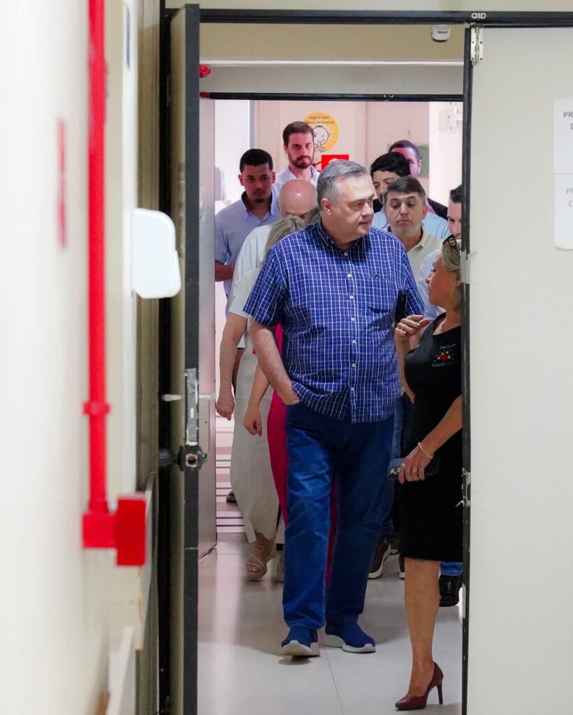 Durante a manhã, Beto Preto visitou o Hospital AssisteGuaíra, acompanhado do secretário municipal de Saúde, Fabiano Raddatz, e do prefeito de Guaíra, Gileade Osti. Na ocasião, conheceu a estrutura da unidade, os serviços prestados e dialogou com a equipe sobre o cenário da saúde no município.