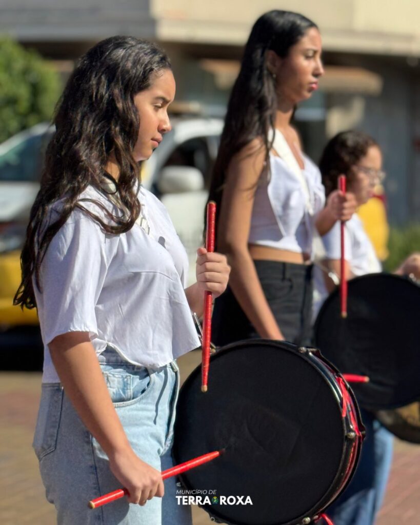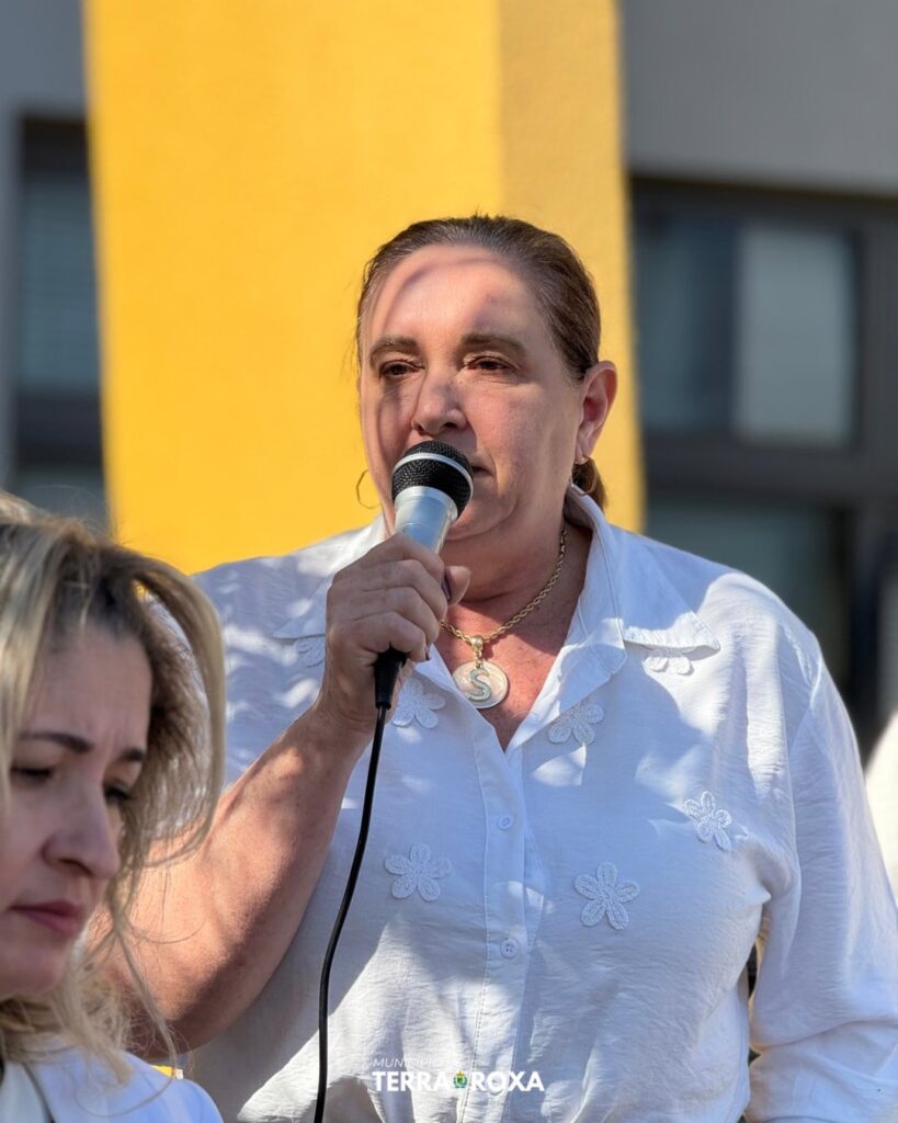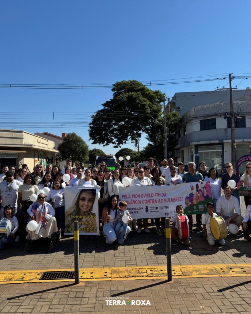 Uma grande passeata aconteceu nas ruas de Terra Roxa nesta terça-feira (22), dia que é marcado como o Dia Estadual de Combate ao Feminicídio.