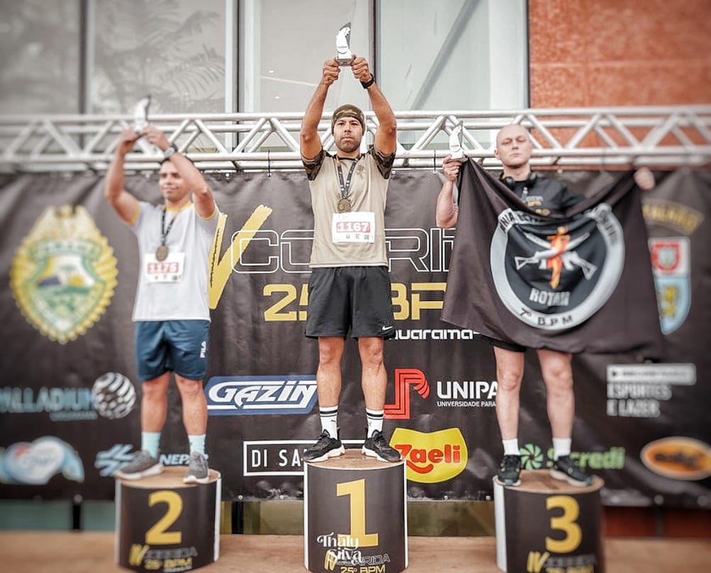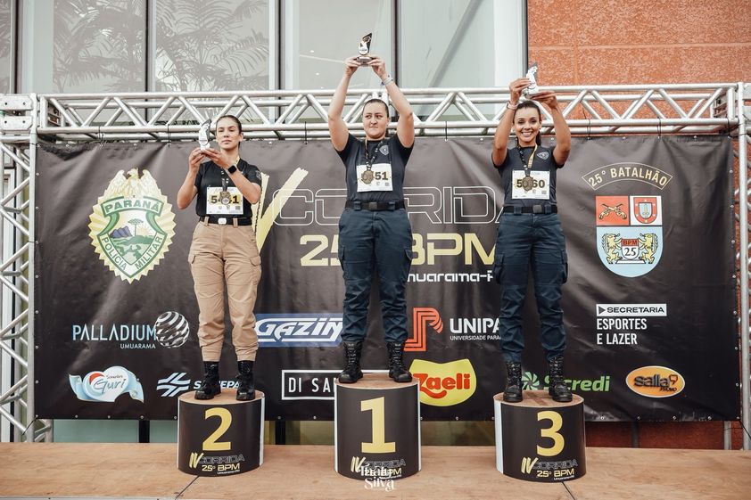 Na categoria Forças de Segurança Pública 5km Fardado (Calça e Coturno) Feminino, duas Guardas Municipais subiram ao pódio. A Agente TATIANE APARECIDA PEREIRA conquistou a terceira colocação com o tempo de 35min40seg e JULIANE TATIANE HENSCHEL sagrou-se campeã da categoria, com o tempo de 34min03seg.